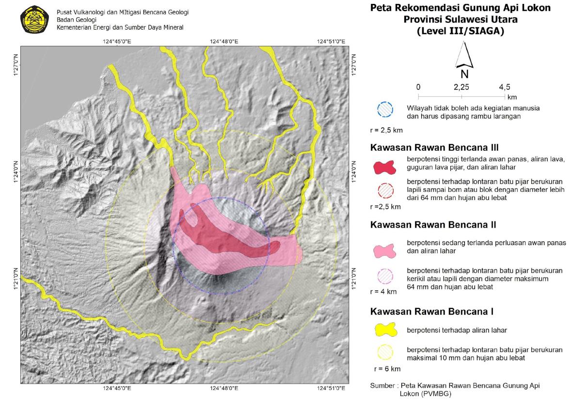 BANDUNG - Pusat Vulkanologi dan Mitigasi Bencana Geologi (PVMBG) Badan Geologi Kementerian Energi dan Sumber Daya Mineral (ESDM) menaikkan tingkat kewaspadaan Gunung Lokon dari Level II (Waspada) menjadi Level III (Siaga). Keputusan ini berlaku mulai Rabu, 3 September 2025 pukul 12.00 WITA, dan diambil berdasarkan hasil pengamatan serta analisis data visual dan instrumental yang menunjukkan kecenderungan peningkatan dalam beberapa hari terakhir.