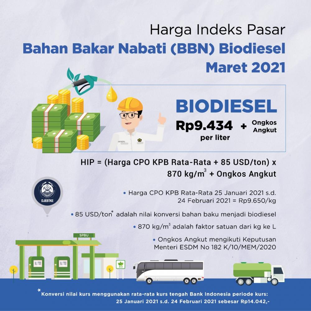 Harga Indeks Pasar (HIP) Bahan Bakar Nabati (BBN) Jenis Biodiesel Bulan Maret 2021