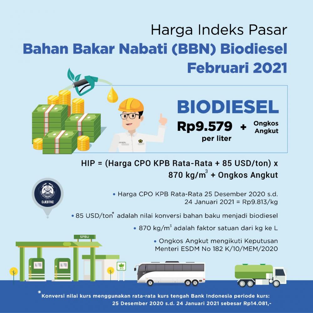 Harga Indeks Pasar (HIP) Bahan Bakar Nabati (BBN) Jenis Biodiesel Bulan Februari 2021
