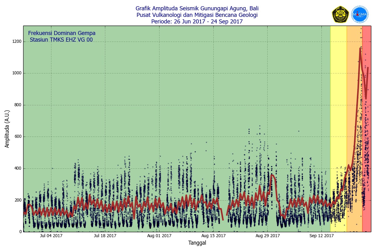 Sebagaimana diketahui bahwa gunung Agung dinaikkan statusnya dari Level II (Waspada) menjadi Level III (Siaga) pada 18 September 2017 pukul 21:00 WITA. Kemudian ditingkatkan kembali dari Level III (Siaga) menjadi Level IV (Awas) pada 22 September 2017 pukul 20.30 WITA.