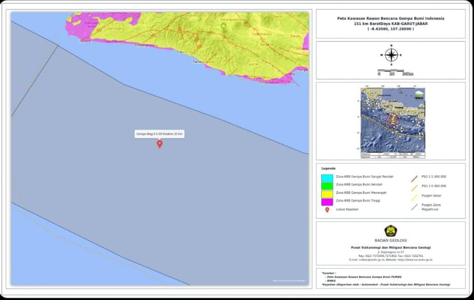 Badan Geologi: Gempa M6,2 Barat Daya Garut Tidak Picu Tsunam dan Likuifaksi