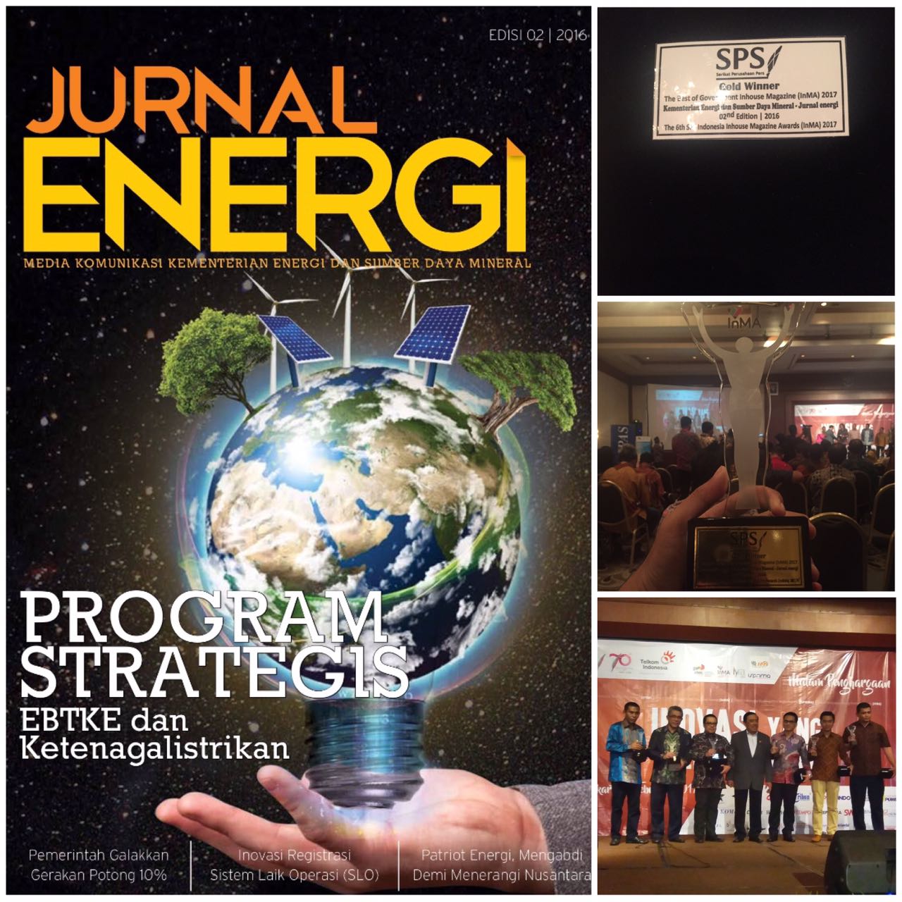 JAKARTA - Kementerian Energi dan Sumber Daya Mineral (ESDM) melalui Jurnal Energi meraih penghargaan dari Serikat Perusahaan Pers (SPS) dalam ajang the 6th Inhouse Magazine Awards (InMA) tahun 2017 sebagai "Gold Winner" media cetak internal kategori Lembaga Pemerintahan. Penghargaan ini diumumkan saat Malam Penghargaan SPS yang diselenggarakan di Hotel Millenium (3/2), Jakarta.