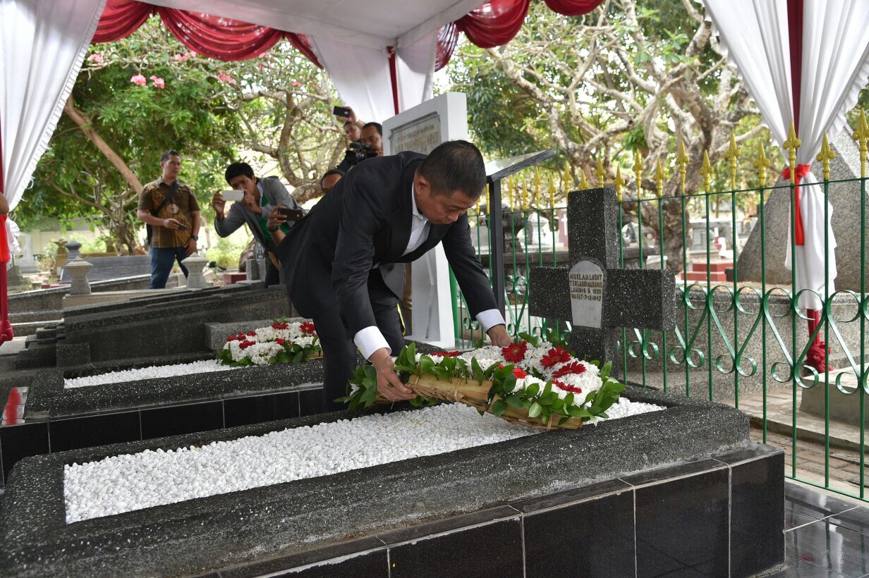 YOGYAKARTA - Jumat, 22 September 2017, Menteri Energi dan Sumber Daya Mineral (ESDM), Ignasius Jonan ziarah sekaligus memberikan penghormatan ke makam Arie Frederik Lasut di Makam Sasanalaya, Yogyakarta. Ziarah yang diikuti keluarga besar A.F. Lasut dan jajaran Kementerian ESDM dilakukan dalam rangka memperingati Hari Jadi Pertambangan dan Energi ke 72 pada tanggal 28 September 2017.