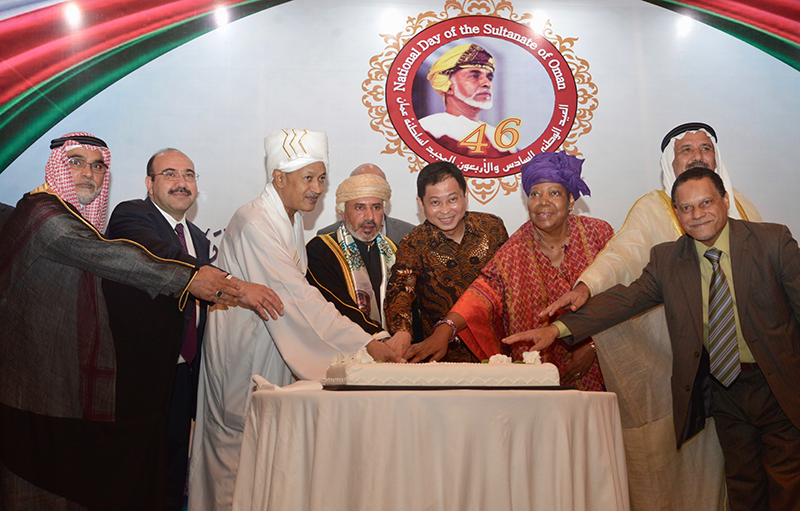 JAKARTA - Menteri ESDM, Ignasius Jonan menghadiri Oman Nasional Day yang diselenggarakan di Hotel Kempinski, Senin (21/11). Kehadiran Menteri ESDM disambut hangat oleh beberapa diplomat Oman diantaranya oleh Al Sayyid Nazar Al Said selaku Duta besar Oman, Hamed Salim Ahmed Almahruqi selaku Menteri yang berkuasa penuh atas Oman dan Anwar Ahmed Muqaibal selaku Konselor Oman.