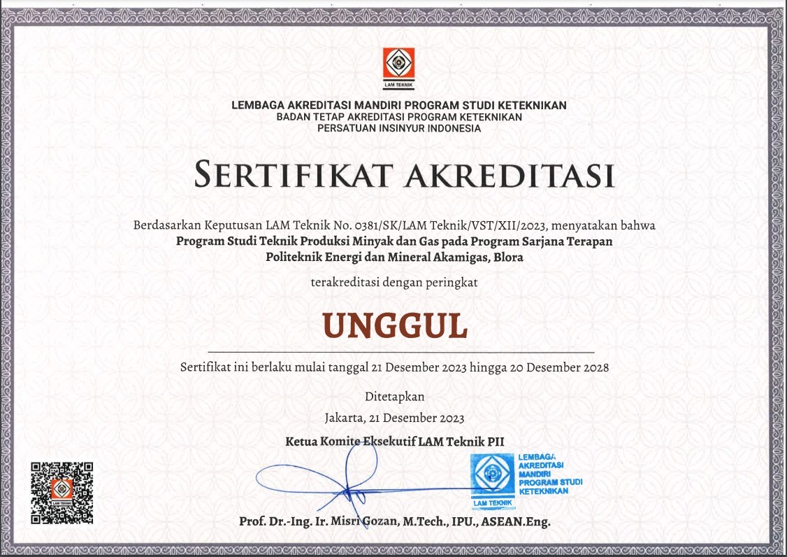 Dua Program Studi Politeknik Energi dan Mineral (PEM) Akamigas secara resmi ditetapkan dengan predikat Akreditasi Unggul. Hal itu menambah Program Studi yang menyandang predikat Akreditasi Unggul menjadi tiga, yakni Program Studi Teknik Produksi Minyak dan Gas yang telah lebih dulu memperoleh predikat unggul di tanggal 21 Desember 2023, kini Teknik Instrumentasi Kilang dan Teknik Pengolahan Minyak dan Gas juga memperoleh predikat yang sama.