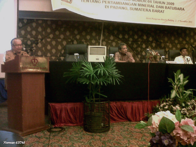 PADANG - Sosialisasi Undang-Undang nomor 4 tahun 2009 tentang Pertambangan Mineral dan Batubara berlangsung di Padang hari Kamis (3/11). Kegiatan diselenggarakan oleh Biro Hukum dan Humas Kementerian Energi dan Sumber Daya Mineral (ESDM) bersama Dinas ESDM Pemerintah Provinsi Sumatera Barat."Acara ini sangat bermanfaat bagi kami yang di daerah seperti di Sumatera Barat. Terutama sebagai bahan informasi dan masukan untuk menyelesaikan berbagai persoalan dan tantangan dalam pengelolaan sumber daya mineral dan batubara," ujar Ir Marzuki Mahdi, Kepala Dinas ESDM Pemprov Sumbar saat memberikan sambutan pembukaan sosialisasi. Pada acara yang secara resmi dibuka oleh Ir Marzuku Mahdi tersebut hadir pula Kepala Bagian Humas Kementerian ESDM, Drs Binsar Hutabarat MSc, mewakili Kepala Biro Hukum dan Humas Kementerian ESDM. Saat menyampaikan sambutan diungkapkan oleh Binsar Hutabarat bahwa kegiatan sosialisasi merupakan upaya untuk menyampaikan produk hukum dan kebijakan kepada instansi pemerintah, pelaku usaha serta masyarakat luas. Pada kesempatan tersebut Marzuki Mahdi mengungkapkan pemerintah daerah Sumatera Barat menyambut baik kegiatan sosialisasi UU nomor 4/2009. "Sebab dengan diselenggarakannya kegiatan seperti ini kami bisa mendapatkan penjelasan untuk melakukan langkah yang perlu ditempuh dalam pengelolaan sumber daya mineral dan batubara di daerah secara baik dan benar," ujar Marzuki Mahdi.Pada kegiatan sosialisasi di paparkan materi mengenai UU nomor 4/2009, PP nomor 22/2010 tentang Wilayah Pertambangan, PP nomor 23/2010 tentang Pelaksanaan Kegiatan Usaha Pertambangan Mineral dan Batubara serta PP nomor 55/2010 tentang Pembinaan dan Penyelenggaraan Pengelolaan Usaha Pertambangan Mineral dan Batubara. Sebagai narasumber yang menyampaikan paparan adalah Fadli Ibrahim SH, Kepala Bagian Hukum, Direktorat Jenderal Mineral dan Batubara, Ilham Munandar juga dari Direktorat Jenderal Mineral dan Batubara. Sedang sebagai Moderator adalah Ir Beni Azhar MSi dari Dinas ESDM Pemerintah Provinsi Sumbar. Pada kegiatan tersebut hadir sekitar 80 peserta. Para peserta mewakili Dinas ESDM Pemerintah Kabupaten dan Kota se Provinsi Sumatera Barat, Kepolisian Daerah Sumatera Barat, Asosiasi Perusahaan Mineral dan Batubara di Provinsi Sumatera Barat, Universitas atau Perguruan Tinggi di Sumatera Barat dan kalangan LSM. Hadir pula mewakili intansi terkait seperti Dinas Perhubungan, Dinas UKM, Dinas Perindustrian, Dinas Tenaga Kerja, Dinas Lingkungan Hidup serta Bagian Perekonomian Pemerintah Provinsi Sumatera Barat.(AR)