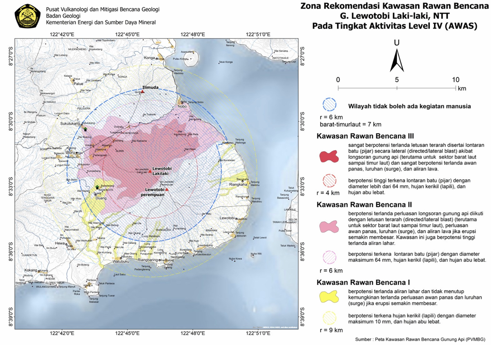 "Hasil analisis visual dan instrumental menunjukkan bahwa aktivitas Gunungapi Lewotobi Laki-laki masih tergolong tinggi. Oleh karena itu, tingkat aktivitas gunungapi ini dinaikkan dari Level III (Siaga) ke Level IV (Awas) pada pukul 20.00 WITA. Masyarakat dan wisatawan diimbau untuk tidak melakukan aktivitas dalam radius 6 km dan sektoral barat-timur laut sejauh 7 km dari pusat erupsi,"ujar Kepala Badan Geologi Muhammad Wafid di Bandung hari ini, Minggu (18/5).