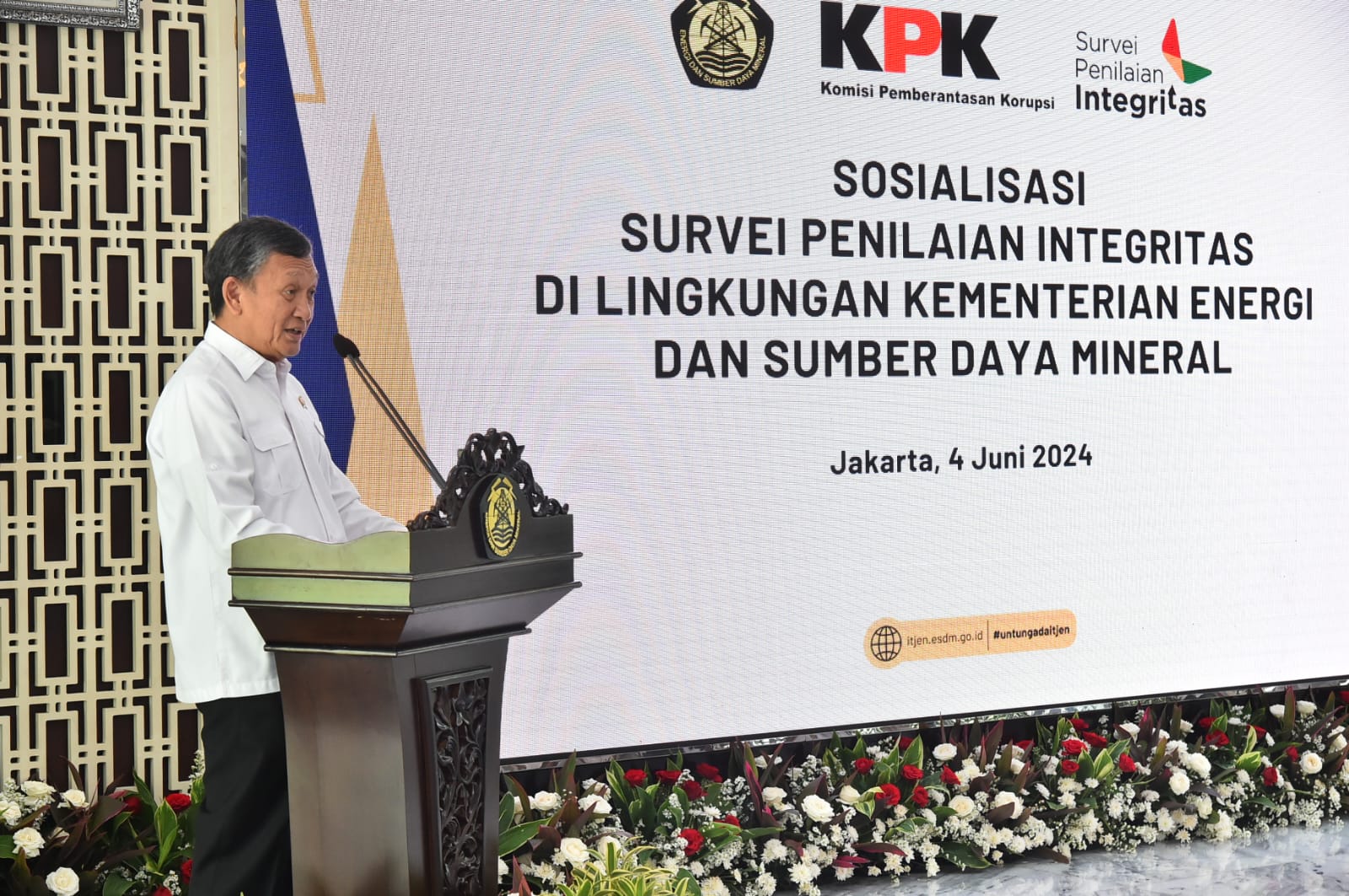 Kementerian Energi dan Sumber Daya Mineral (ESDM) melalui Inspektorat menyelenggarakan sosialisasi Survei Penilaian Integritas (SPI) yang disupervisi oleh Komisi Pemberantasan Korupsi (KPK). Sosialisasi diikuti oleh seluruh Pejabat Eselon I dan II Kementerian ESDM yang digelar pada Selasa (4/6) di Ruang Sarulla Gedung Chairul Saleh Kementerian ESDM, Jakarta.
