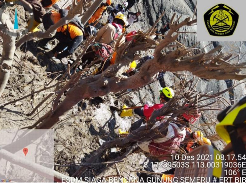 Ego menambahkan, berdasarkan laporan dari Tim ESDM Siaga Bencana per tanggal 10 Desember 2021, Tim masih terus melakukan pencarian korban di berbagai lokasi terdampak termasuk di Kampung Renteng, Desa tumpeng, tambang pasir Haji Satuhan dan Kampung Curah Kobokan dan area aliran lahar bekas tambang pasir.