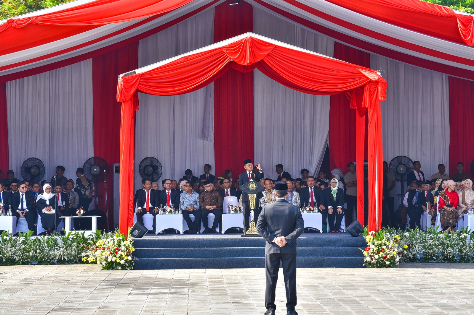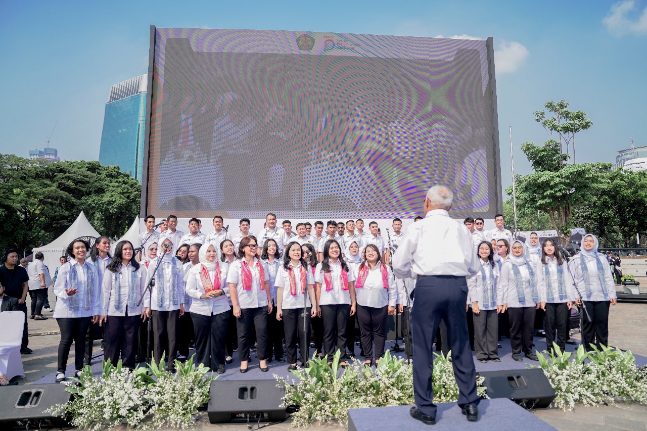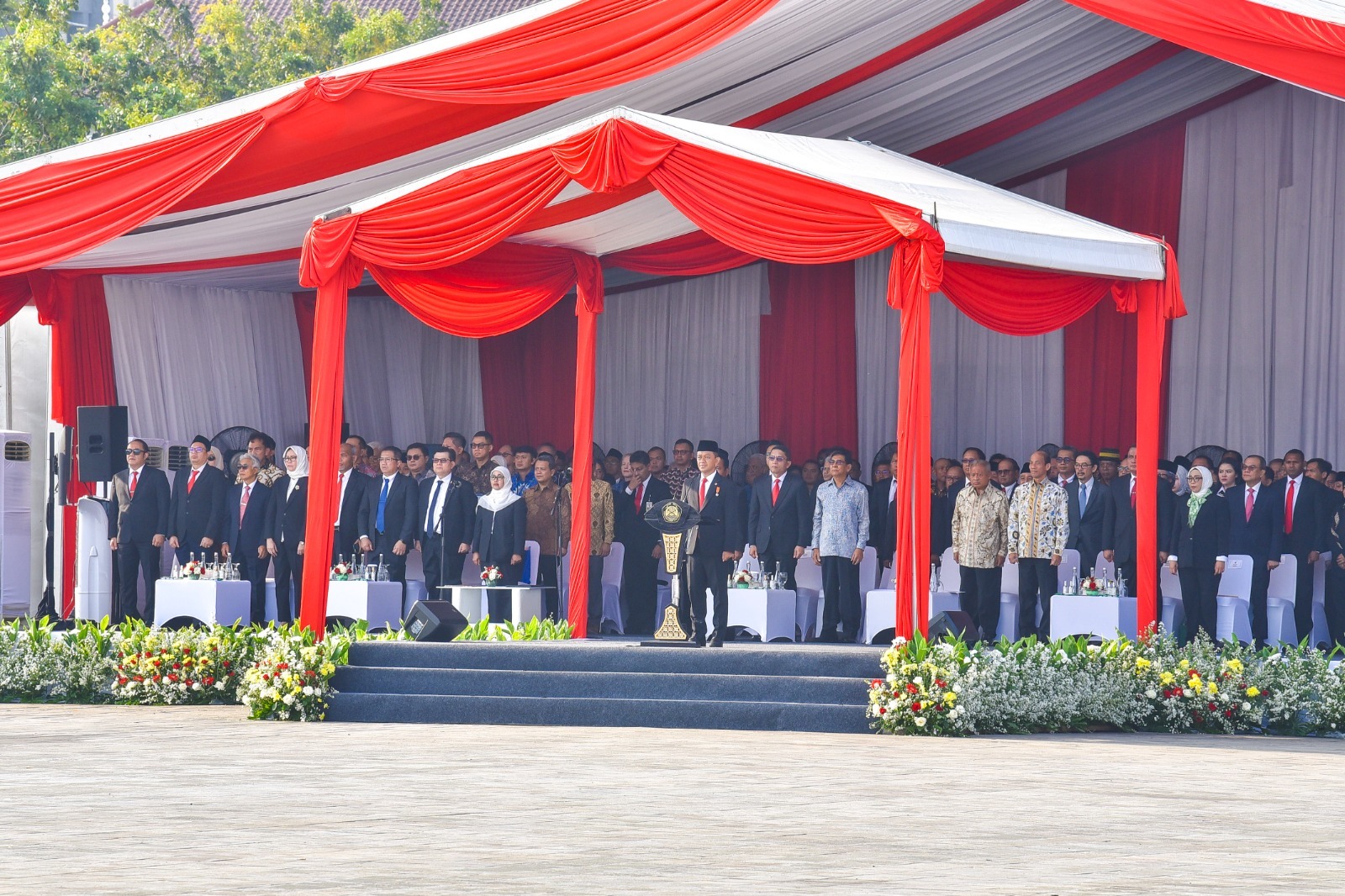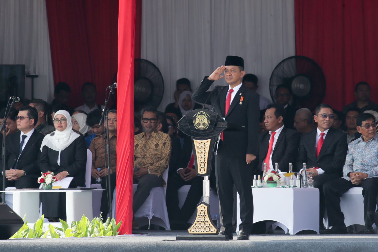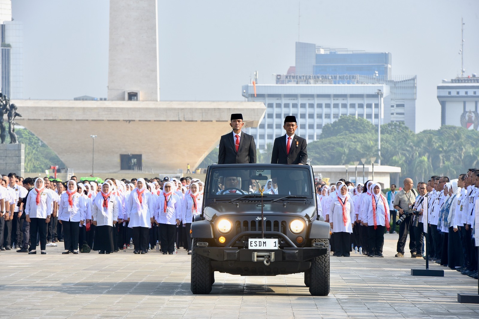 Menteri ESDM Memimpin Upacara Peringatan Hari Jadi Pertambangan dan Energi Ke-79 di Lapangan Monumen Nasional, Jakarta, Kamis (10/10)
