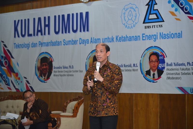 Vice Minister of EMR Arcandra Tahar gave a Public Lecture at Sebelas Maret State University (UNS) Solo