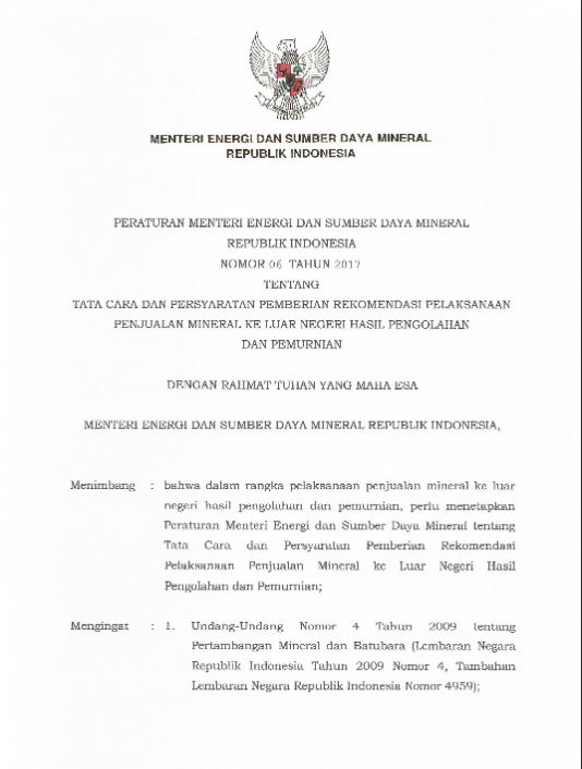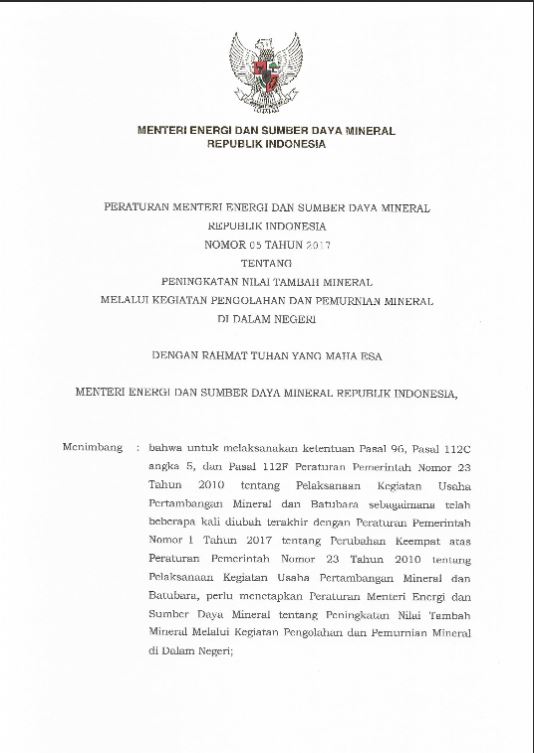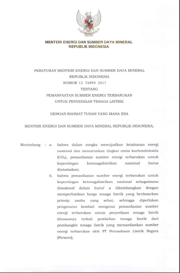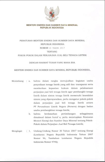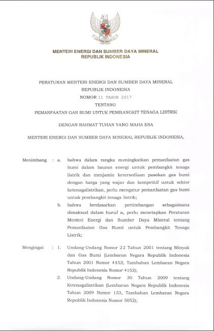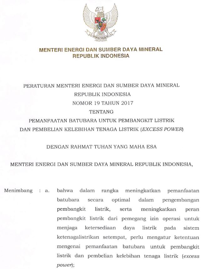 Permen ESDM Nomor 19 Tahun 2017 tentang Pemanfaatan Batubara untuk Pembangkit Listrik
