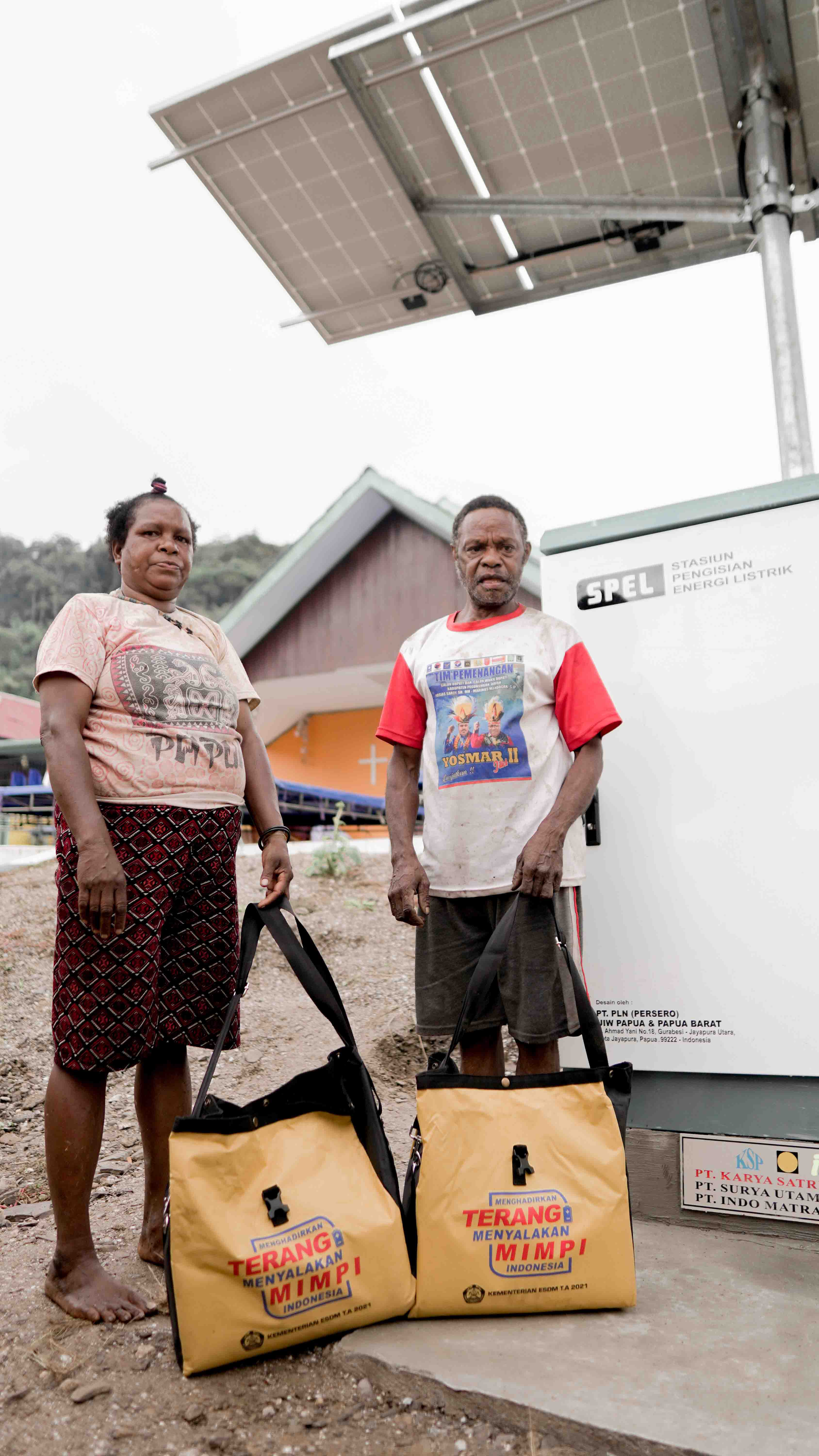 Pundak kokoh Mama Yuliana (50 tahun) memanggul karung berisi batatas (ubi jalar) dari kebun di kampung atas bukit. Tiga kali ia naik-turun bukit dengan membawa sekitar 10 kilogram batatas sekali panggul. Meski keringat berulang kali menetes, senyum Mama Yuliana tersungging saat tiba di rumah. "Lelah, tapi senang, saya siapkan ini nanti untuk menyambut kedatangan tamu-tamu penting," ujar Mama Yuliana ditemui tim esdm.go.id di rumahnya, Minggu sore (5/12).