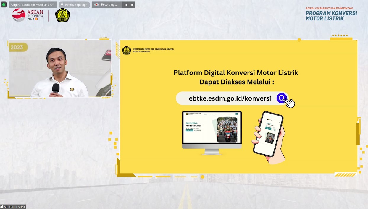 Untuk mendukung pelaksanaan pemberian Bantuan Pemerintah dalam Program Konversi Sepeda Motor Listrik, Kementerian Energi dan Sumber Daya Mineral (ESDM) melalui Direktorat Jenderal Energi Baru Terbarukan dan Konservasi Energi (EBTKE) saat ini telah menyiapkan platform digital guna memberikan layanan satu pintu proses konversi motor listrik.