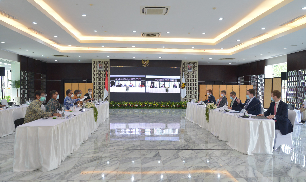 Menteri Energi dan Sumber Daya Mineral (ESDM) Arifin Tasrif didampingi jajaran pejabat eselon I terkait, hari senin (31/5), menerima kunjungan Y.M. Alok Sharma COP 26 President Designate Pemerintah UK dan Owen Jenkins, Duta Besar UK untuk Indonesia dan Timor Timur. Kunjungan ini adalah dalam rangka mendukung sektor ESDM dalam mencapai tujuan net zero emission Indonesia.