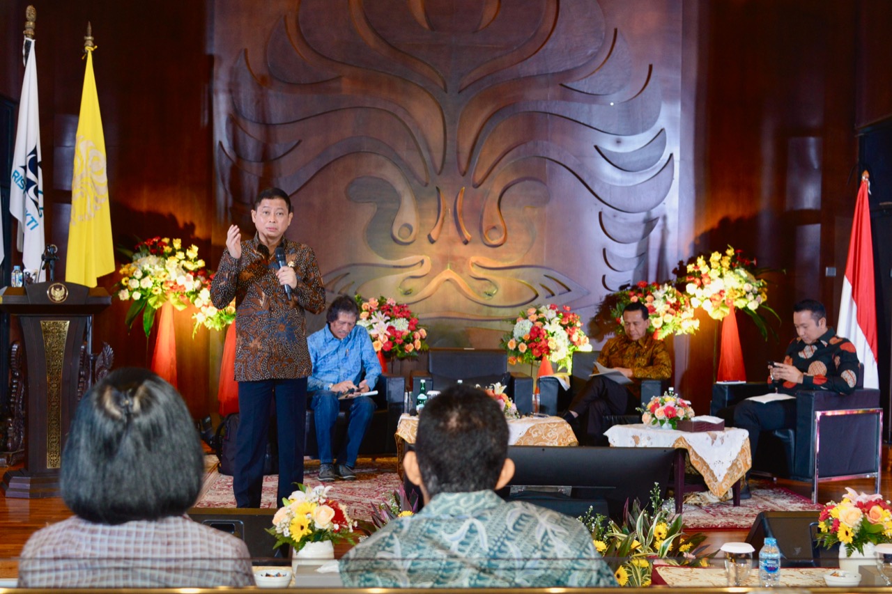 Pada kesempatan ini, hadir pula sebagai pembicara Anggota IV Badan Pemeriksa Keuangan (BPK), Rizal Djalil dan Peneliti Senior Universitas Indonesia Johny Wahyuadi. (NA)