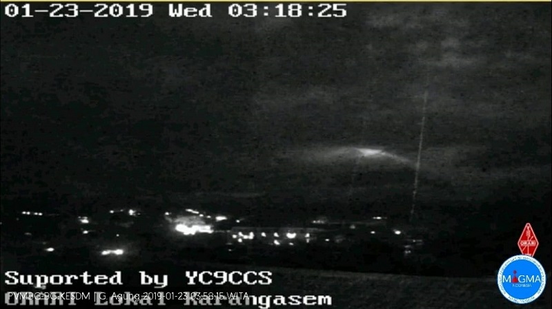 Pos Pengamatan Gunung Agung mencatat, status kegempaan Gunung Agung melalui rekaman seismograf tanggal 22 Januari 2019 tercatat 1 kali gempa Letusan, 4 kali gempa Vulkanik Dangkal, 1 kali gempa Hembusan, 1 kali gempa Tektonik Lokal, 1 kali gempa Terasa (skala II MMI) dan 5 kali gempa Tektonik Jauh.