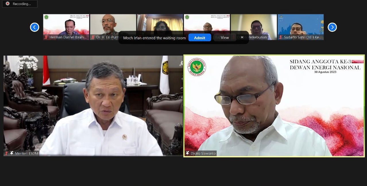 Menteri Energi dan Sumber Daya Mineral (ESDM) Arifin Tasrif, hari ini, Kamis (30/9) memimpin Sidang Anggota Dewan Energi Nasional (DEN) Ketiga tahun 2023. Sidang tersebut membahas Rancangan Peraturan Presiden tentang Cadangan Penyangga Energi (R-Perpres CPE) yang kini tengah memasuki tahap permohonan persetujuan kepada Menteri terkait.