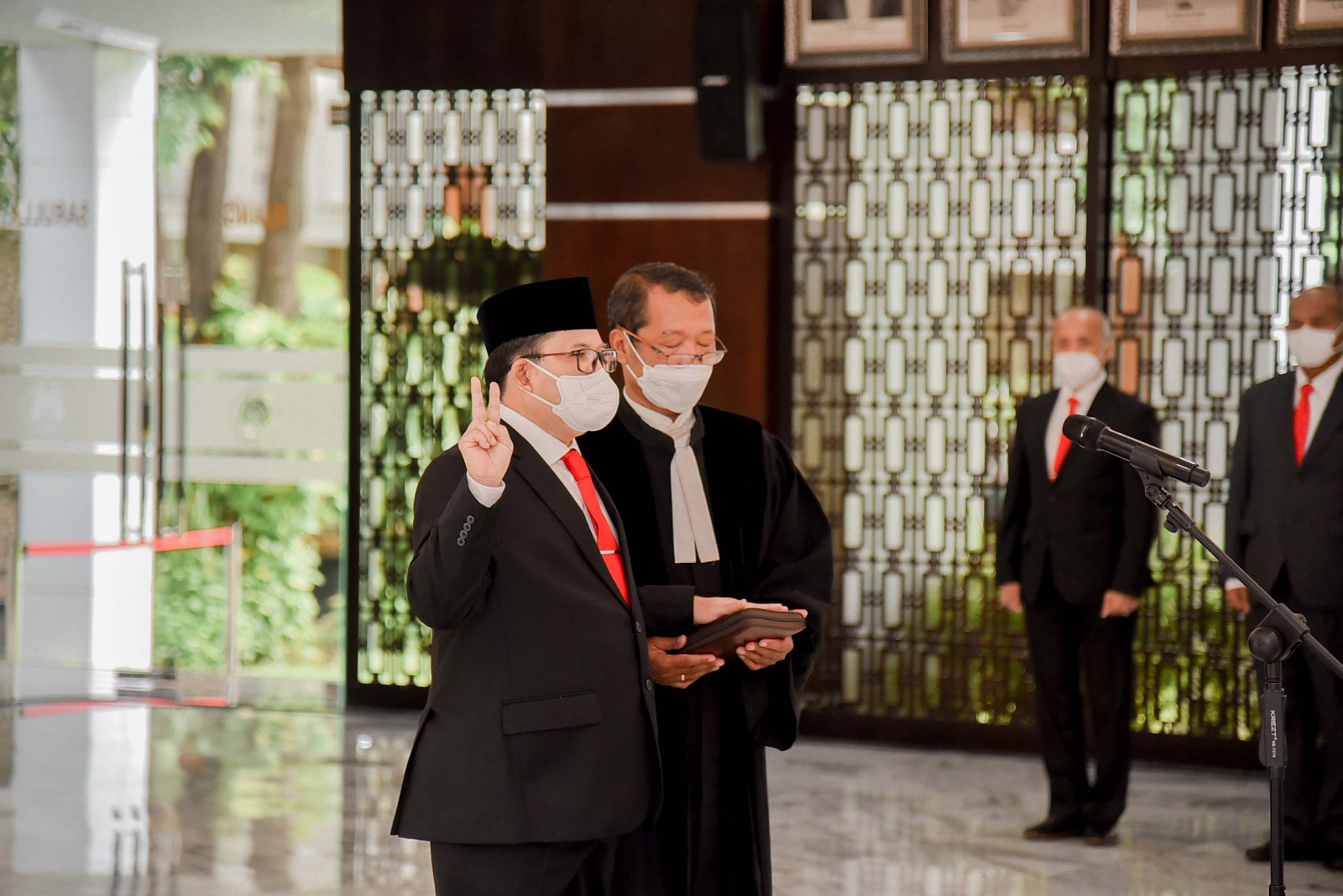 Pelantikan bertempat di Gedung Chairul Saleh, Kantor Sekretariat Jenderal Kementerian ESDM, Jakarta dengan tetap menerapkan protokol kesehatan. (NA)