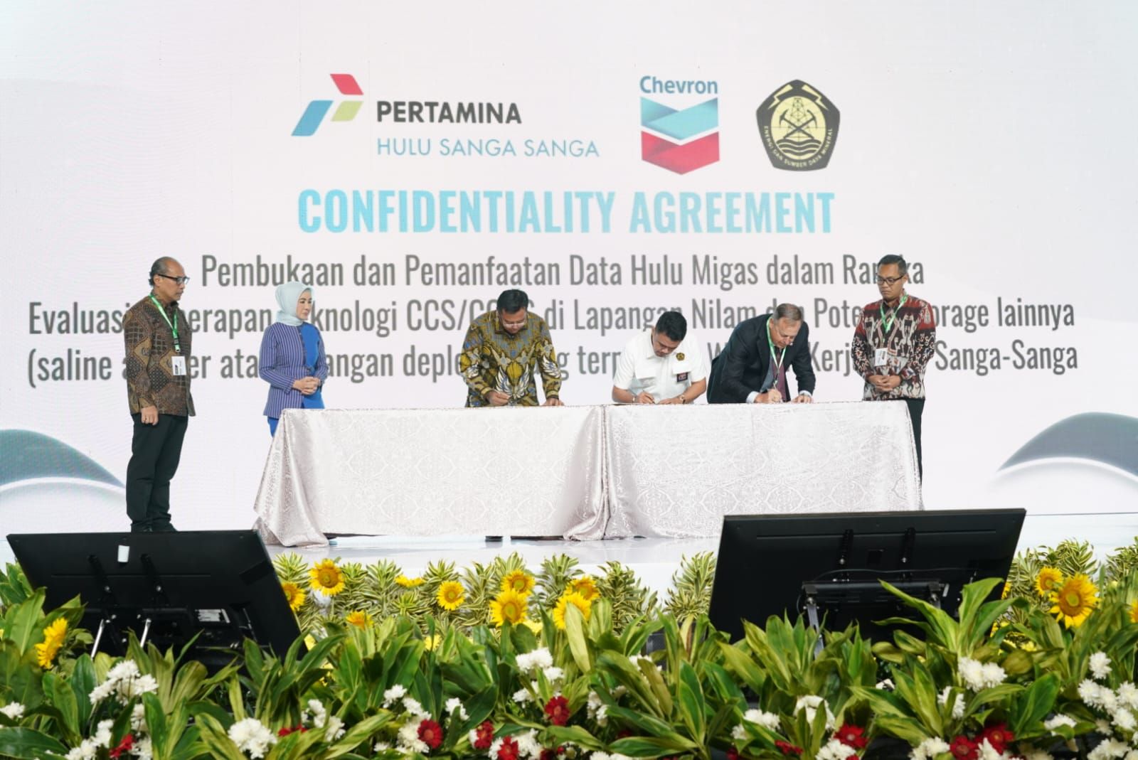 Sebagai salah satu aksi untuk implementasi teknologi CCS/CCUS tersebut, ditandatangani tiga Confidential Agreement antara Kementerian ESDM dengan Pertamina Hulu Mahakam & Chevron; Kementerian ESDM Pertamina Hulu Sanga-Sanga & Chevron; dan Kementerian ESDM dengan Pertamina Hulu Rokan & Mitsui. Penandatanganan dilakukan pada acara 1st International & Indonesia CCS Forum 2023 di Hotel Mulia Jakarta, Senin (11/9).