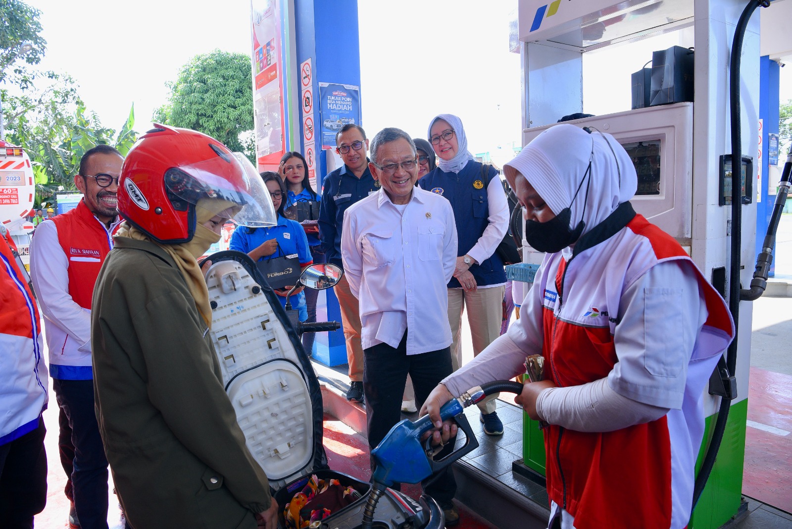 Untuk memastikan layanan sektor energi sampai ke masyarakat, Arifin mengunjungi SPBU Candi Sari di sekitar Kabupaten Cilacap. Ia berdialog dengan para operator SPBU dan memastikan ketersediaan stok BBM dan LPG.