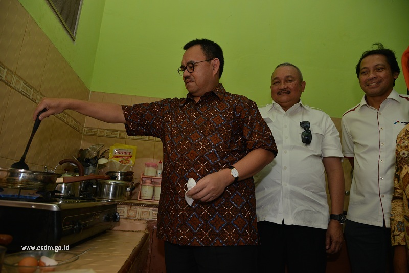 Menteri ESDM meninjau langsung rumah warga yang sudah dialiri Jargas di Desa Wonosari, Sumatera Selatan