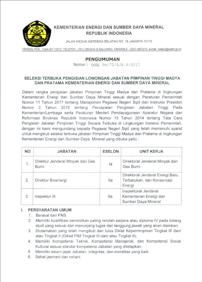 Info selengkapnya dapat dilihat di seleksijabatan.esdm.go.id