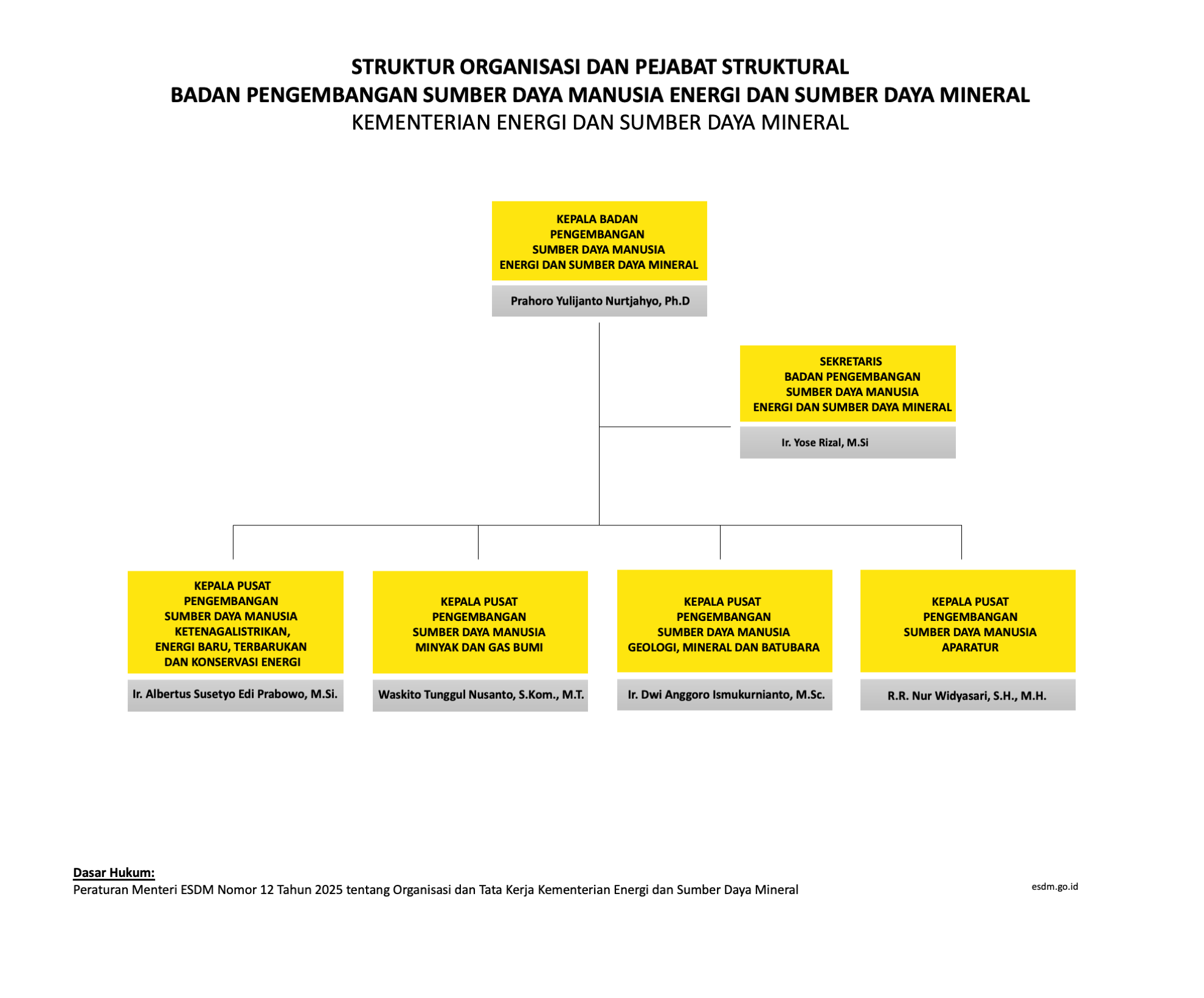 - Sekretariat Badan Pengembangan Sumber Daya Manusia Energi dan Sumber Daya Mineral;